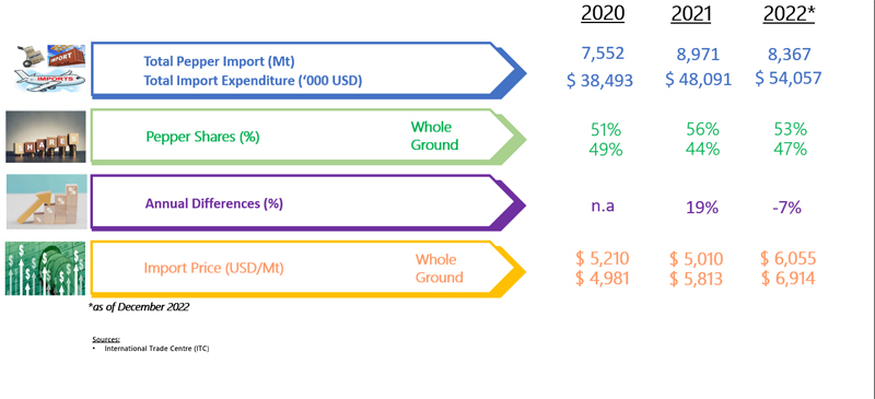 IMPORT OF PEPPER BY CANADA (2020 - 2022)