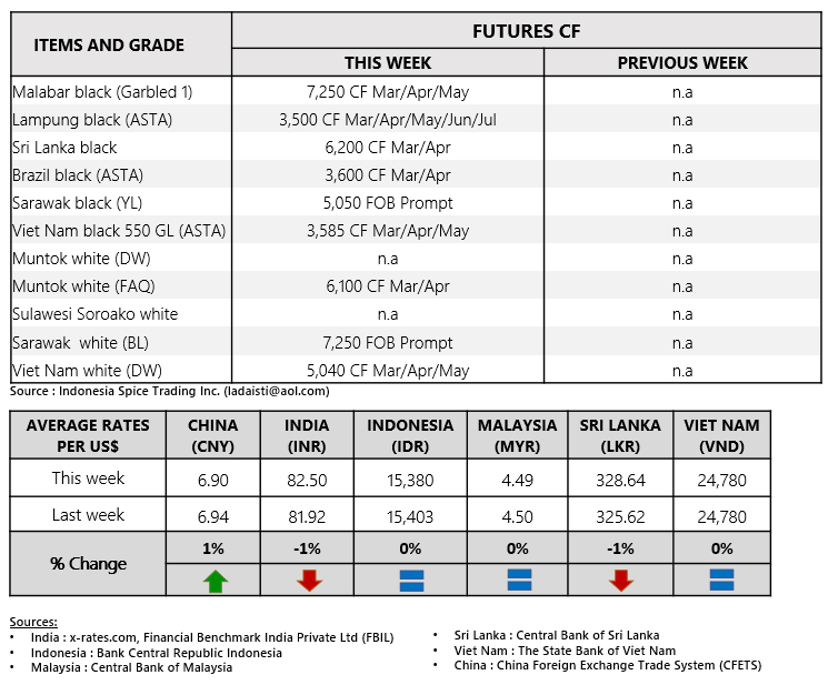 FOB PRICE WHITE PEPPER - in US $/Mt