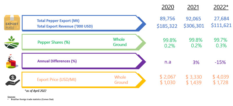 EXPORT OF PEPPER BY BRAZIL (2020 - 2022)