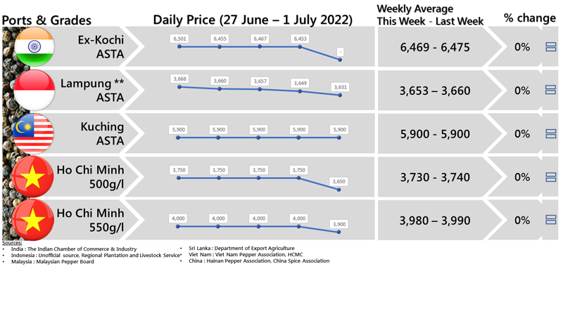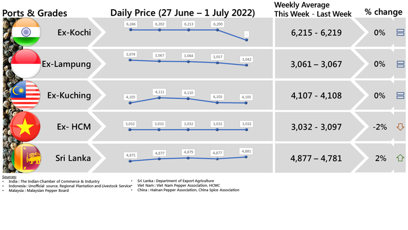 FOB PRICE BLACK PEPPER - in US$/Mt