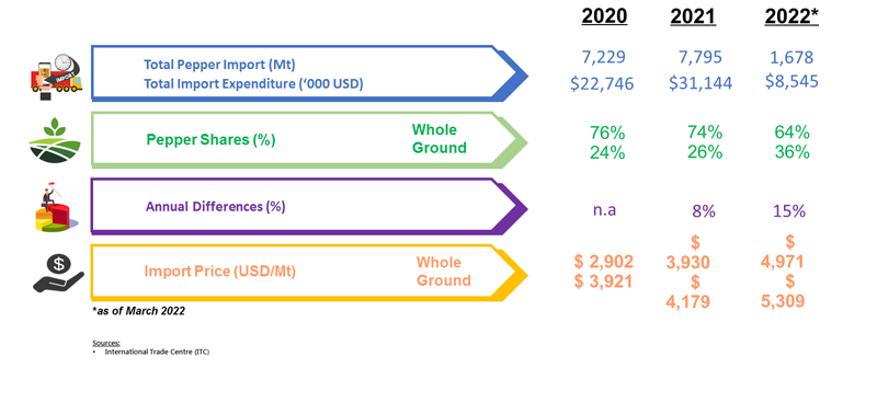 IMPORT OF PEPPER BY POLAND (2020 - 2022)