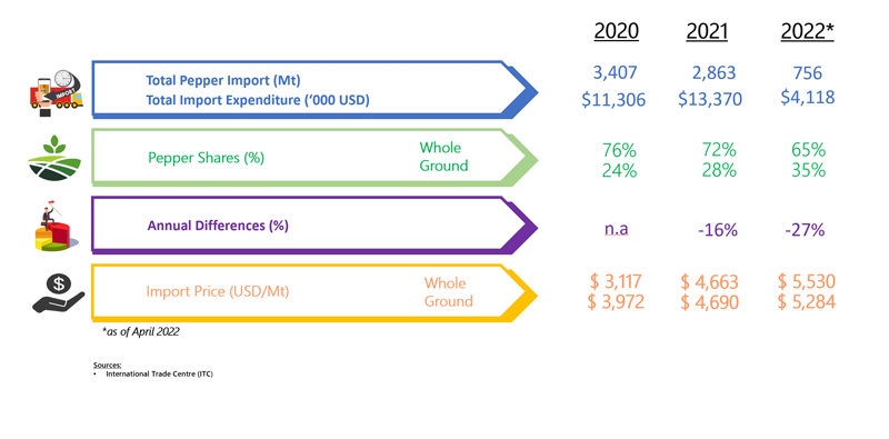 IMPORT OF PEPPER BY SINGAPORE (2020 - 2022)