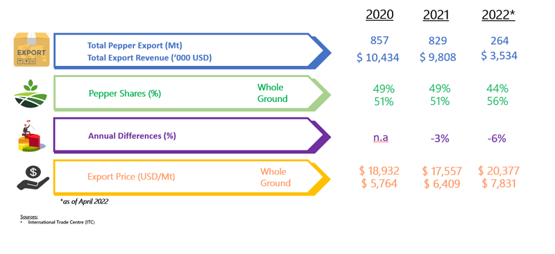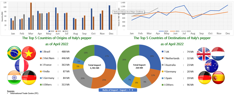 EXPORT OF PEPPER BY ITALY (2020 - 2022)