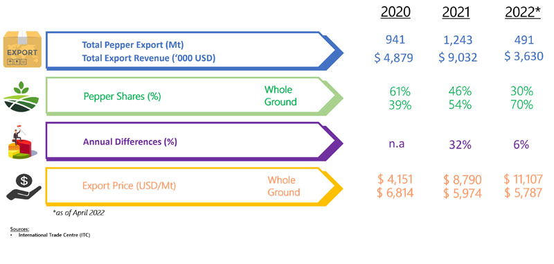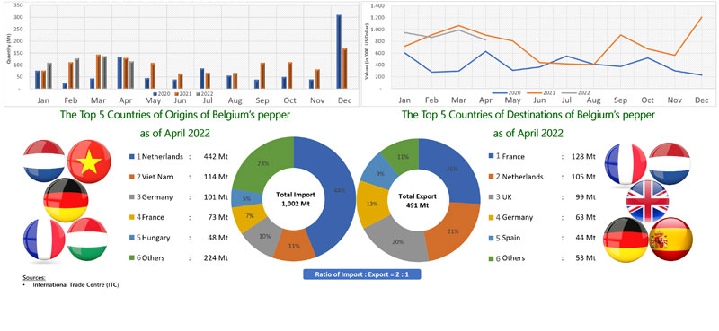 EXPORT OF PEPPER BY BELGIUM (2020 - 2022)