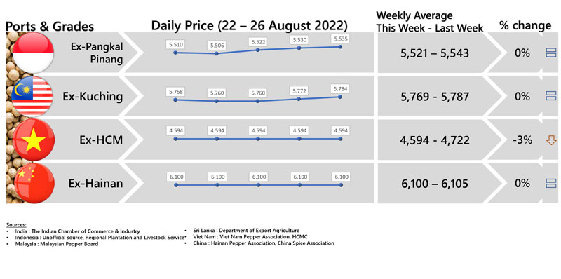 FOB PRICE WHITE PEPPER - in US $/Mt