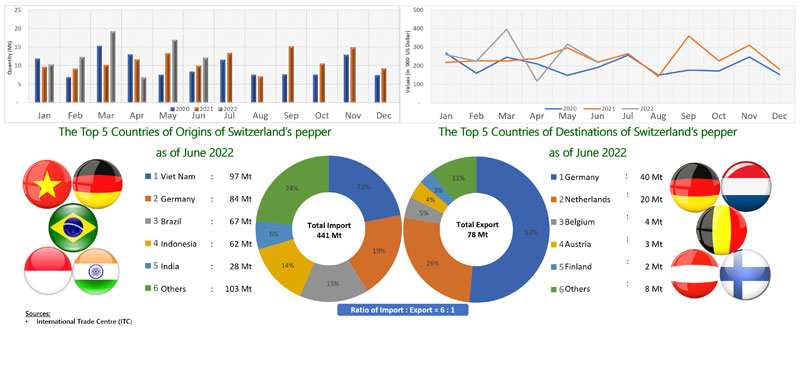 EXPORT OF PEPPER BY SWITZERLAND (2020 - 2022)