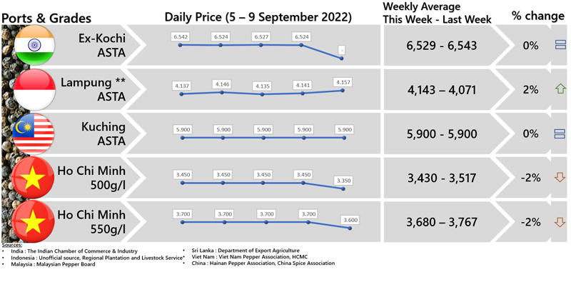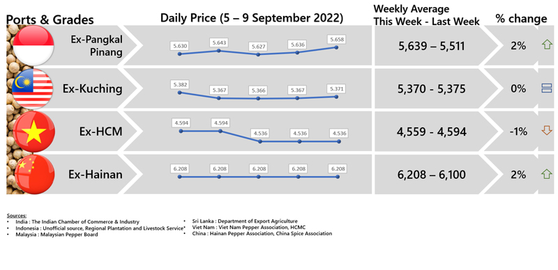 FOB PRICE WHITE PEPPER - in US $/Mt