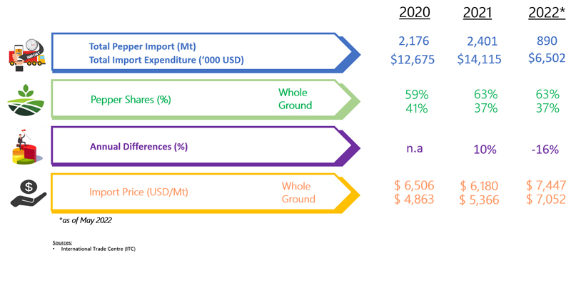 IMPORT OF PEPPER BY SWEDEN (2020 - 2022)