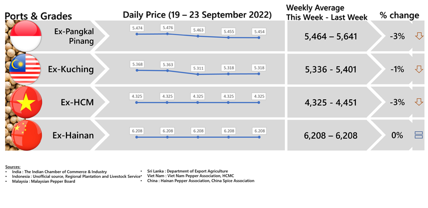 FOB PRICE WHITE PEPPER - in US $/Mt