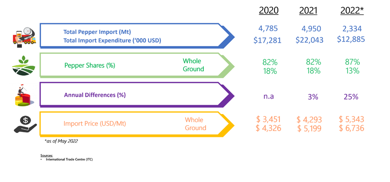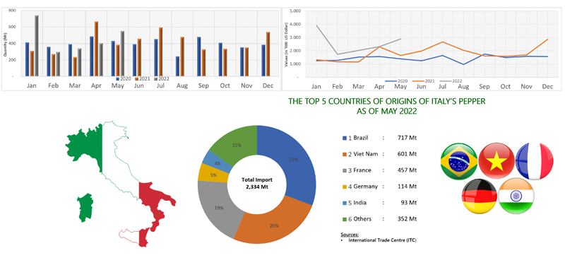 IMPORT OF PEPPER BY ITALY (2020 - 2022)