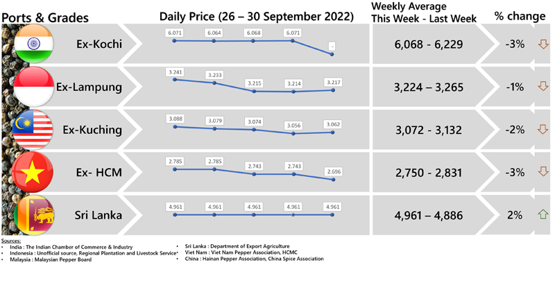 FOB PRICE BLACK PEPPER - in US$/Mt