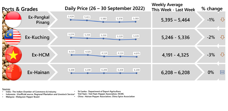 FOB PRICE WHITE PEPPER - in US $/Mt