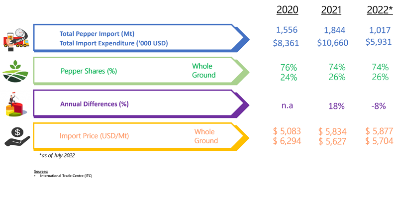IMPORT OF PEPPER BY CZECH REPUBLIC (2020 - 2022)