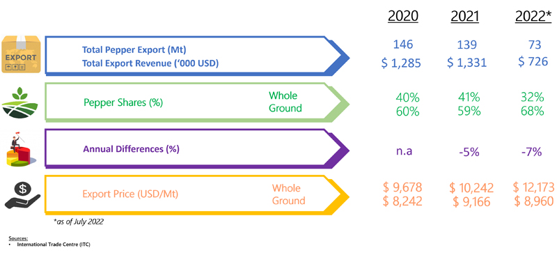 EXPORT OF PEPPER BY PORTUGAL (2020 - 2022)