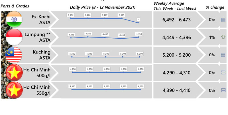 | 03 | Indonesia - Indonesian pepper price, both local and international continued responding positively for the last two weeks as business reported with no significant movement. |