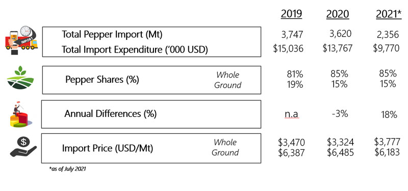 IMPORT OF PEPPER BY AUSTRIAÂ (2019-2021)