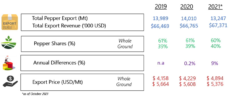 | 02 | India - Following two weeks responding negatively, Indian pepper price responding positively this week which could be contributed to the strengthening of Indian Rupee against the US Dollar (INR 75.51 @ 1 USD), recording a 1% appreciation. |