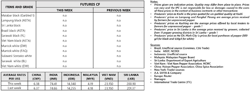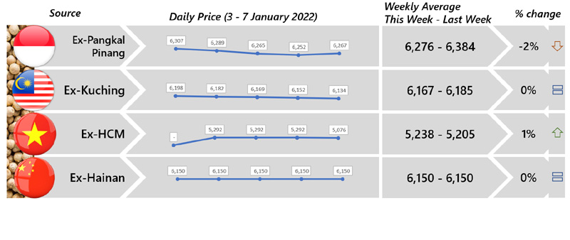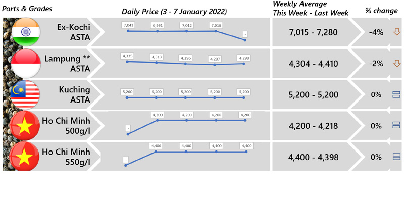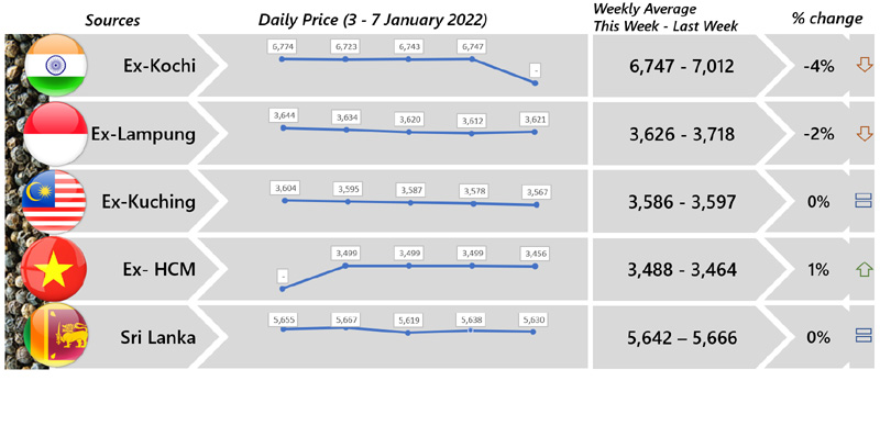 | 06 | Viet Nam - Despite Viet Nam local price were reported with an increasing trend, Viet Nam white pepper international price continued responding negatively this week. Whilst, Viet Nam black pepper was reported stable. |