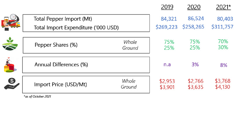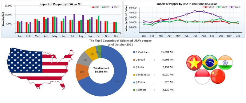 IMPORT OF PEPPER BY UNITED STATES OF AMERICA (2019-2021)
