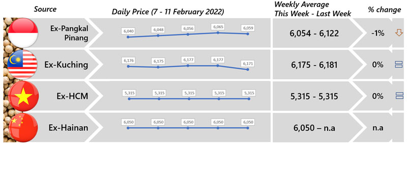 | 03 | Indonesia - Despite Indonesian white pepper price was reported with a decreasing trend, Indonesian black pepper price responding positively this week as less stock at farmers level. |