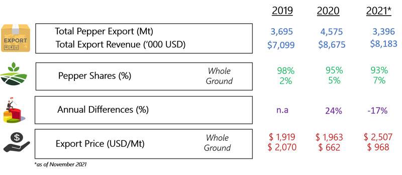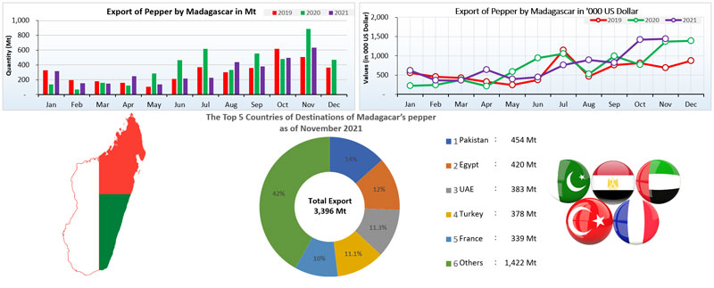 EXPORT OF PEPPER BY MADAGASCAR (2019 - 2021).